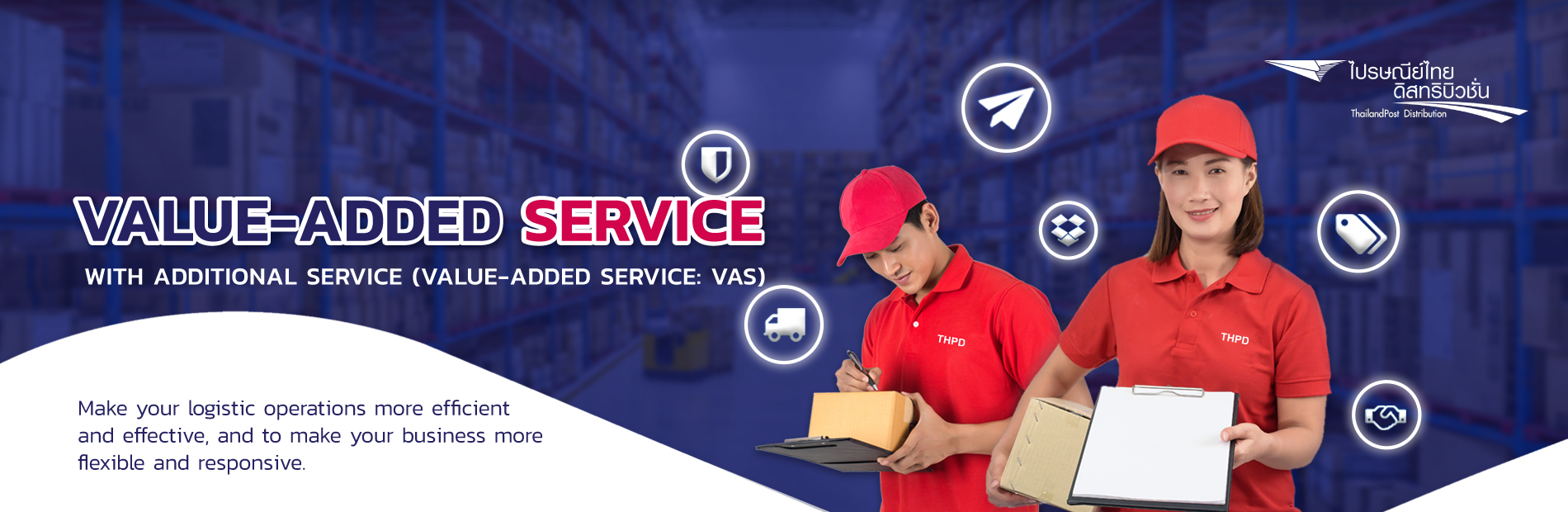 Strengthen your competitive advantage with a broad variety of services. Thailandpost Distribution offers assorted business solutions, distribution planning service, and many more, by logistics experts.